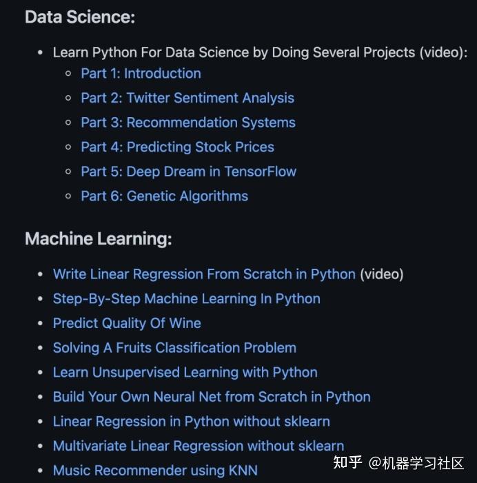 无论是 Web/移动开发、机器学习还是数据科学,这个repo都有很好的项目集合,可以参考这些项目以供学习和将来使用。该列表按语言分类,在每种语言下,可以找到来自不同主题的大量项目。