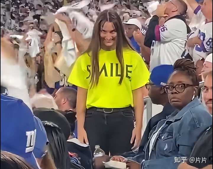 派拉蒙在各大职业棒球赛的观众席中,安排演员身穿印有“微笑(smile)”字样的T恤,从头到尾一动不动,杵在那儿微笑。