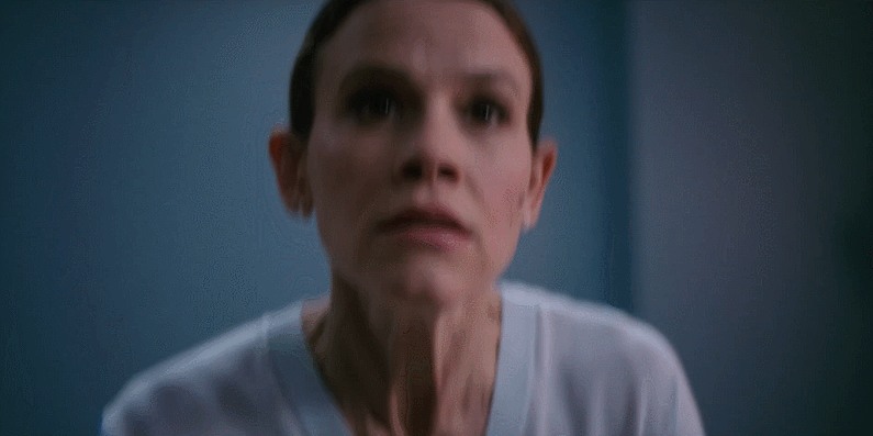 罗丝专心听诊断录音,劳拉的身影突然出现,吓观众一跳。