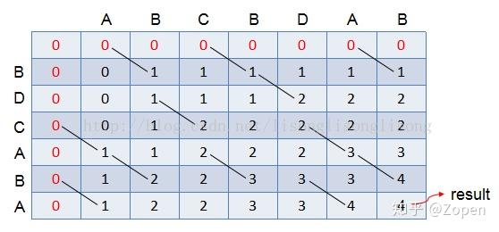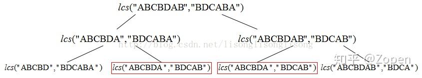 可以看出,X 和 Y 的最长公共子序列有 “BDAB”、“BCAB”、“BCBA”,即长度为4。