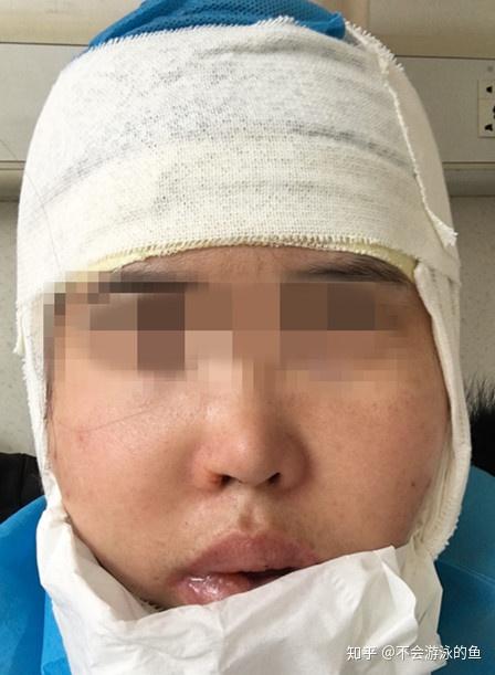 但随着麻醉药物彻底代谢,各种不适的感觉开始恢复。首先是饥饿,术后上下颌之间是咬合垫,头上缠着纱布,嘴里缝引流管,嘴巴无法张开,只能把一根很细的输液管小心的塞进嘴里,然后用针管打流食,打水。然后脸开始肿胀,眼睛,嘴唇,脸颊全部开始肿起来了,呼吸不畅也在逐渐加重,口腔内不停地分泌唾液,来不及咽下去,只能让不停地用纸擦,鼻腔里全部是血,所以没有办法正常呼吸,这也是每个正颌术后的病人最痛苦的事情。