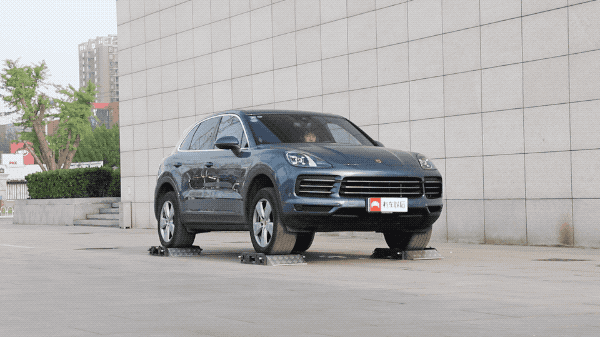 Cayenne E-Hybrid全时四驱系统对动力的分配更偏向后轮,所以当仅双后轮有附着力时,后轮非常轻松的将车推出了滑轮组,位于滑轮组上的前轮也并没有发生打滑。