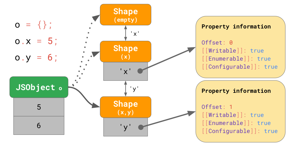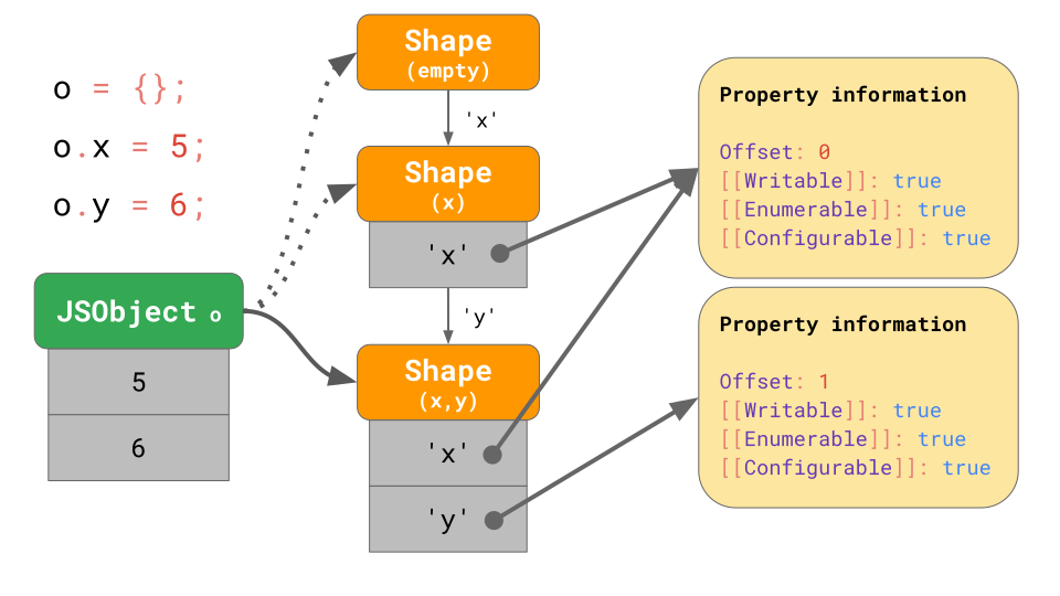 考虑到这一点,JavaScript 引擎可以根据对象的形状来优化对象的属性获取。它是这么实现的。