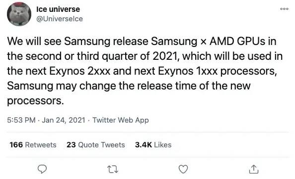 根据数码博主 @universe 的消息,三星将在今年第二季度或第三季度发布首款搭载 AMD GPU 的 Exynos 芯片。从目前的爆料信息来看,三星 Exynos 9925 的 GPU 性能已经超过了苹果的 A14 仿生,如果可以将功耗控制更低,性能甚至还有上升的空间。