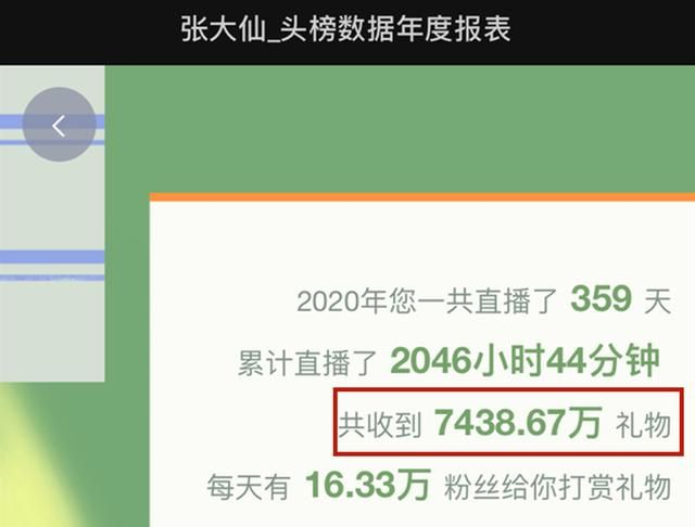 在游戏版块,王者荣耀主播张大仙撑起半天天,2020年的礼物收入高达7438.67万元,不仅在王者荣耀版块中位居第一,更是在全网主播中排行第一。