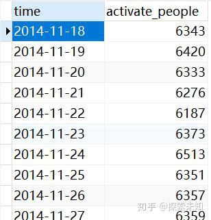 select time,count(distinct user_id)as activate_people from taobao_app group by time;