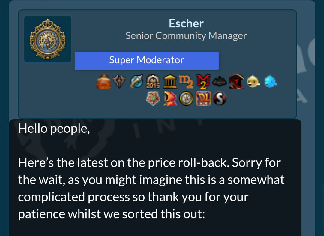 情报君昨天刚说P社的补偿结果没出,今天就公布了补偿方案:凡是非美元货币区(因为美元区没涨价),5月17日-7月6日购买了 P社任何涨价产品 (DLC应该也算)包括《钢铁之师:诺曼底》预购。