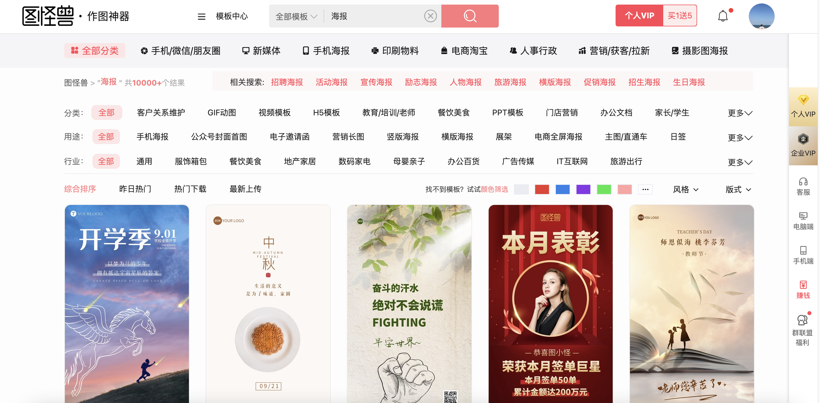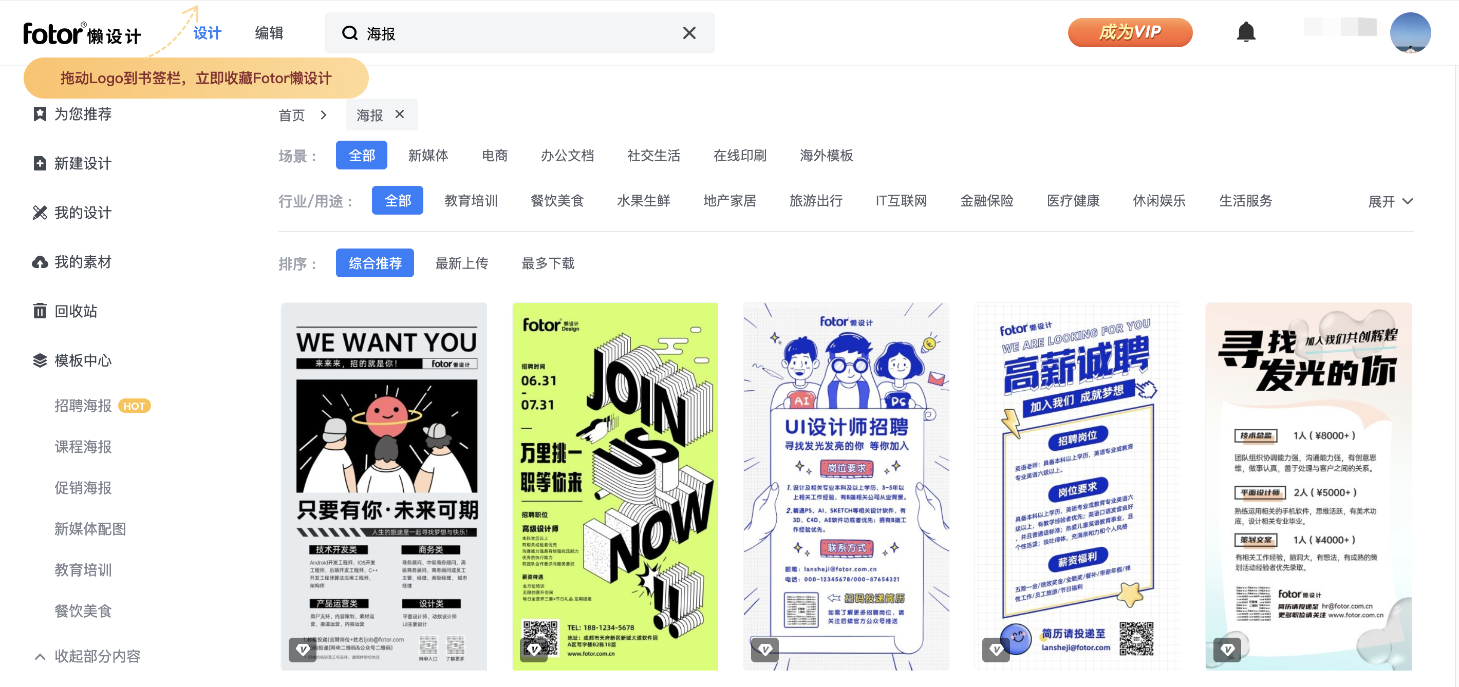 与创客贴类似,也是以【文字类】海报为主,但我个人感觉,从设计风格上来说会更好看更年轻化一些。