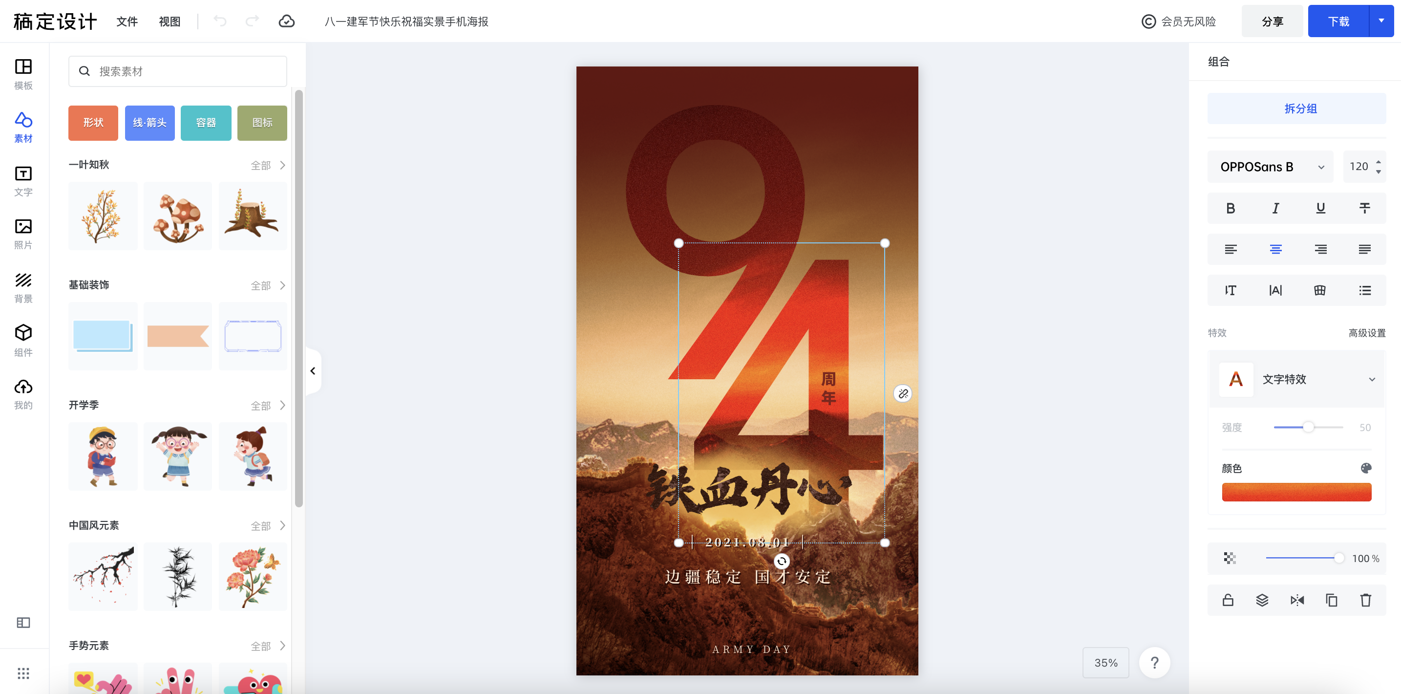 在编辑器这一块,功能模块简单易用 ,能让设计小白秒上手,几分钟就能完成一张海报的制作。
