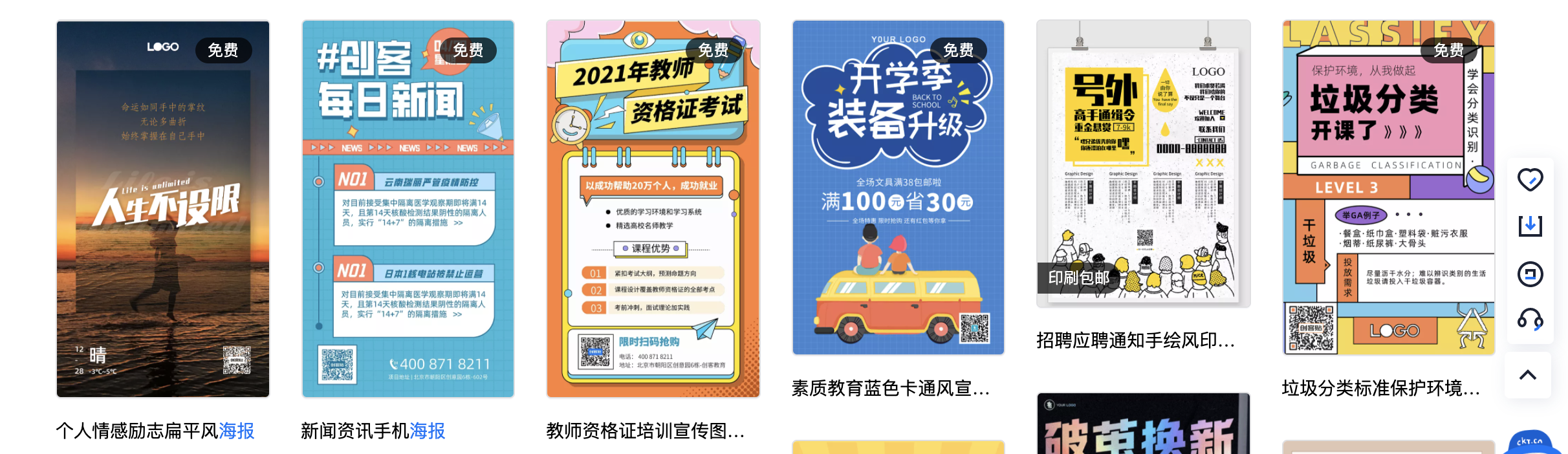 由于它跟千库网、千图网..是同一家公司的,所以很多素材都是共用,在模板的风格和类型上是有一定的【年代感】,个人不是很喜欢。