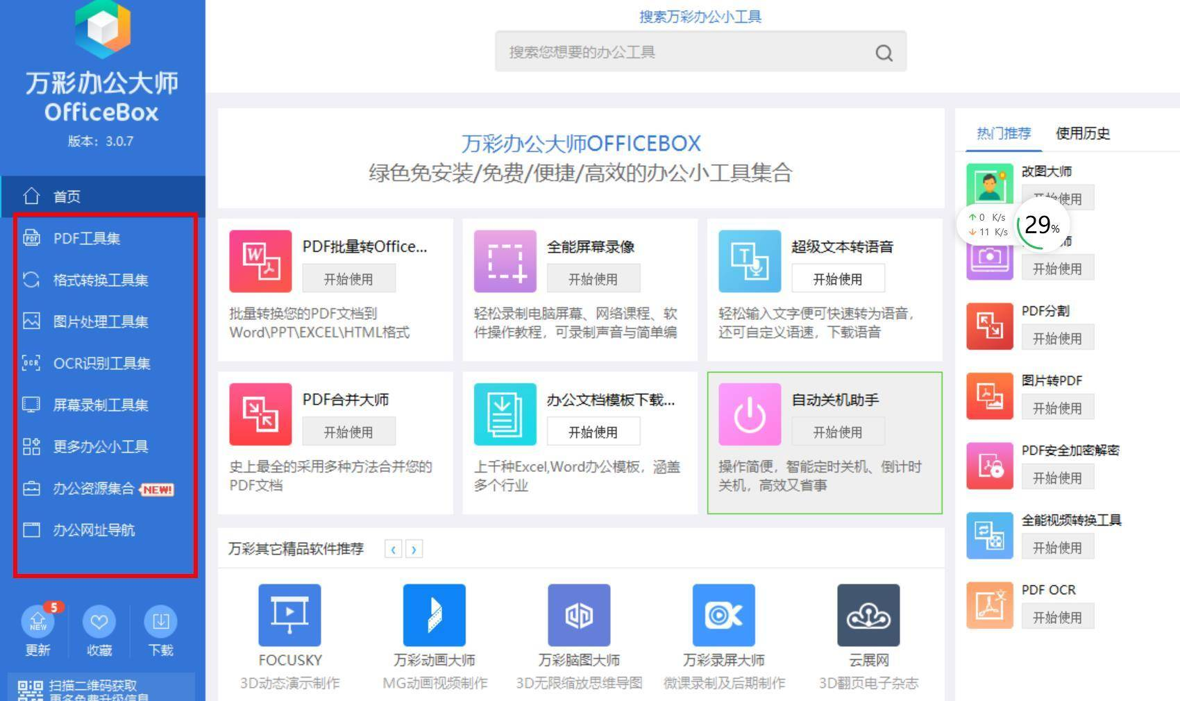 格式转换、图片编辑、屏幕录制、OCR识别等各类日常办公工具,在万彩办公大师这个神器上都可以找到!