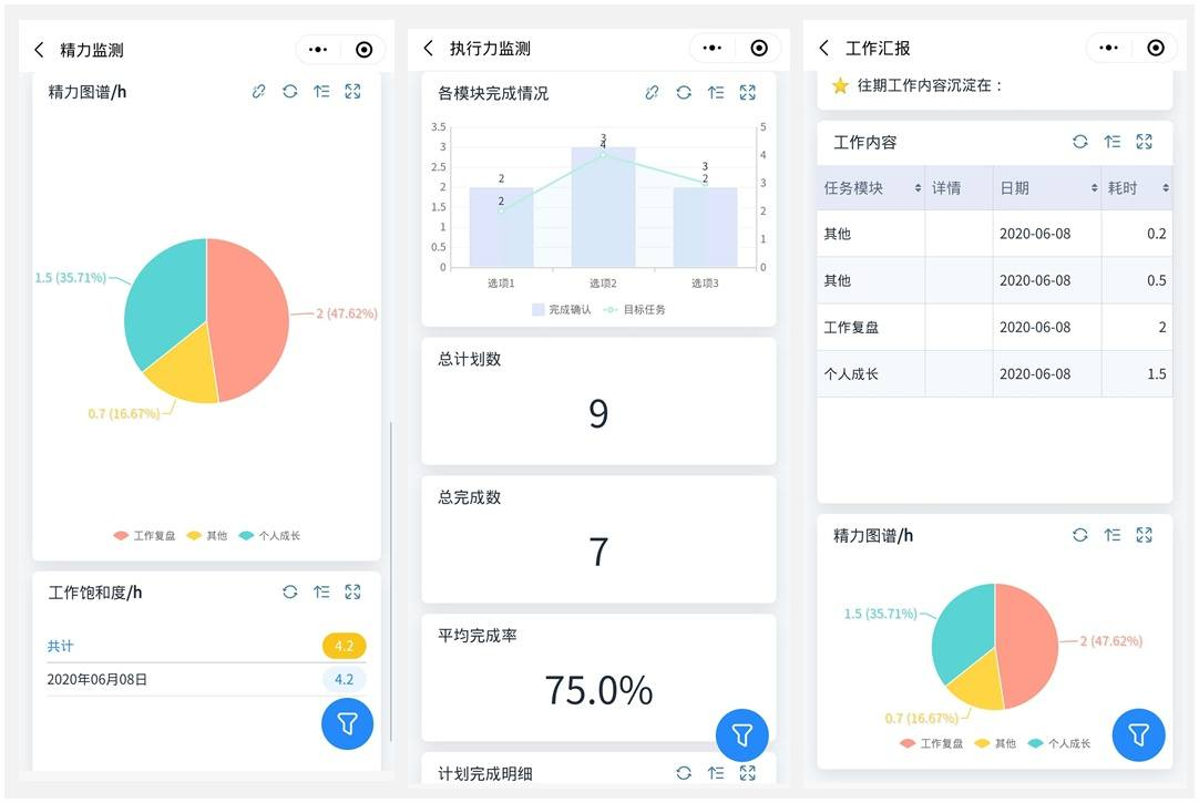 用表单+仪表盘就可以搭建一个【精力图谱】,可有效监测每日时间分布及执行力状况。