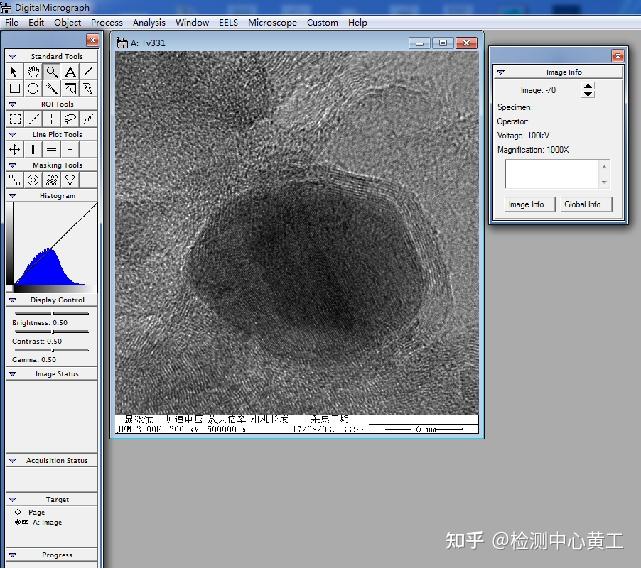然而大部分专业软件都是绑定操作电脑的,仅能在仪器控制拍摄电脑上进行数据处理工作,如JEOL公司的iTEM。相对易获得的图像处理软件,除去功能相对单一的处理软件(如nanomeasure)外,还有相对齐全的ImageJ、Image-Pro、Digimizer 、Digital Micrograph等。