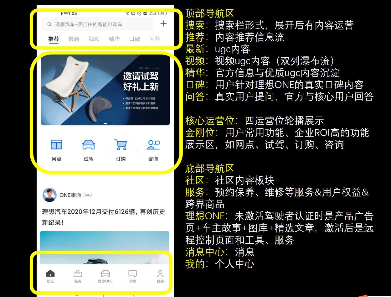 理想ONE APP的核心运营图策略也非常直接。它长期暗示用户做两件事情 1 老拉新 2 到店体验。在理想APP的很多位置都可以看到这种引导。