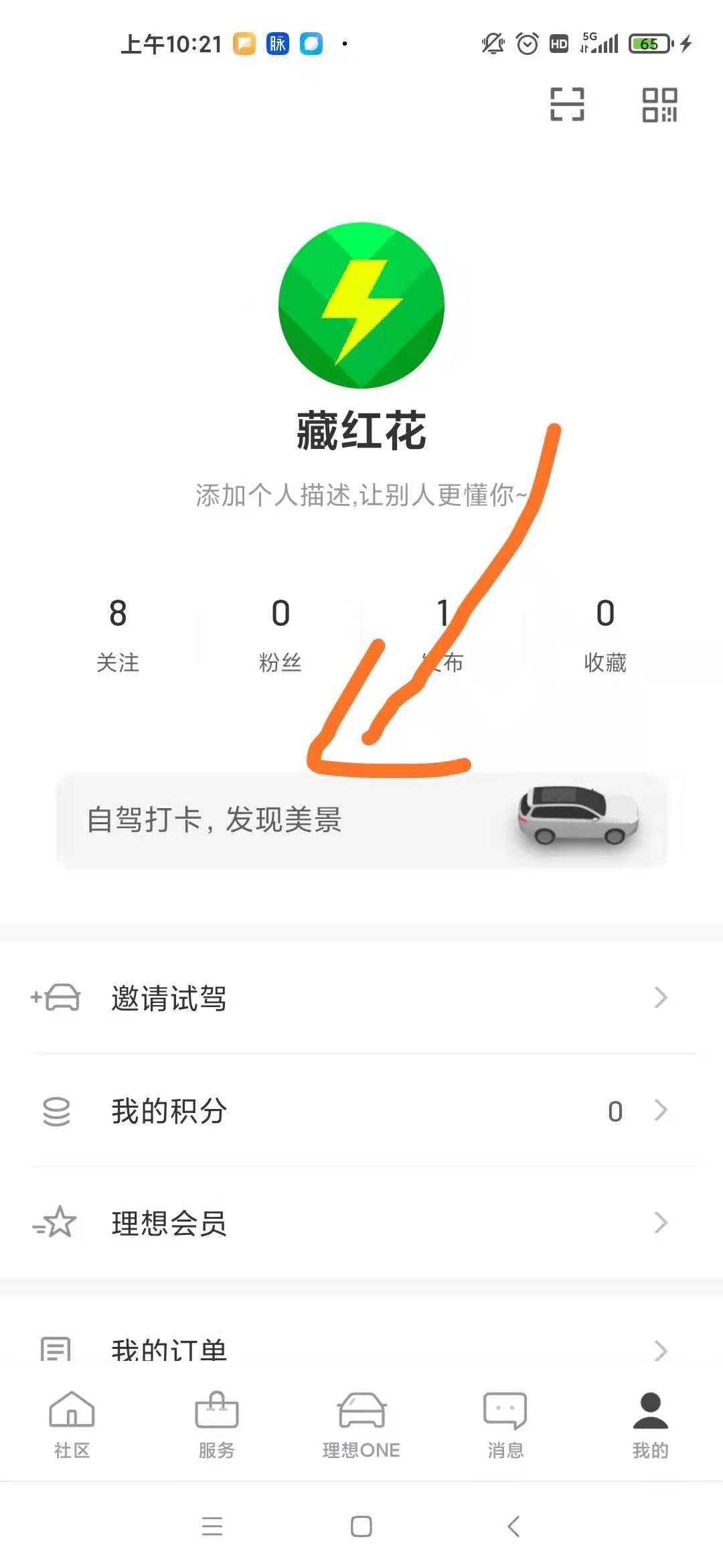 在理想APP的个人中心,有一个板块让我不含而立——自驾打卡。