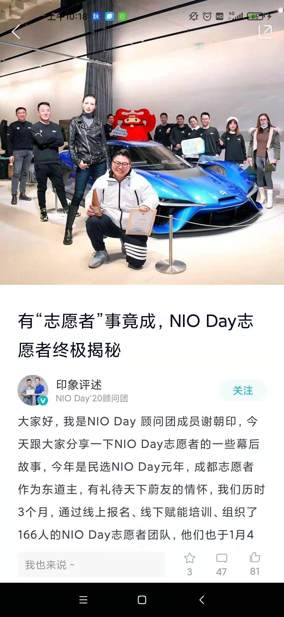【早上写APP运营横评的时候被NIO的创始人李斌发现了。 yiyi呀是蔚来运营产品的负责人。她和张羿迪搭档搞的这个社区产品。大家可以关注yiyi呀的动态,她有分享如何面试加入蔚来以及如何做这个社区的经历。】