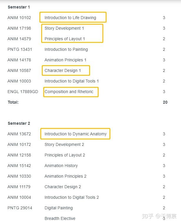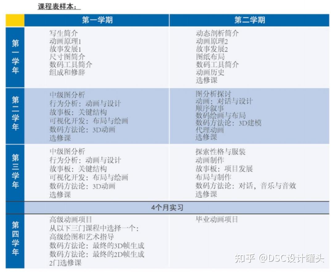 (在这里我只用第一、三年的课程举例分析,对 谢尔丹学院动画专业 感兴趣的同学可以直接品论或私信获取全四年课程表)