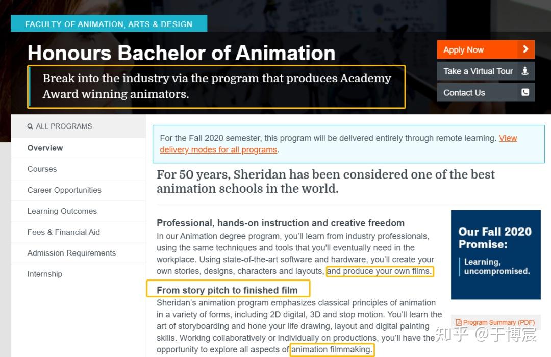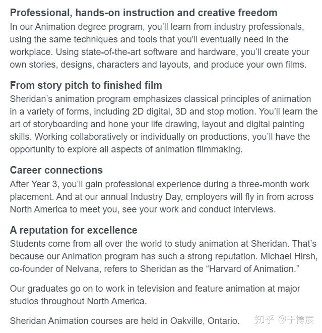 先来看看专业简介,首页的第一句Slogen就已经展现了谢尔丹学院对动画专业的信心和野心: 通过产生奥斯卡获奖者来进入(动画产业) 。然而实际上这个专业的确也可以说是完全 围绕着培养奥斯卡电影人才而展开的 。