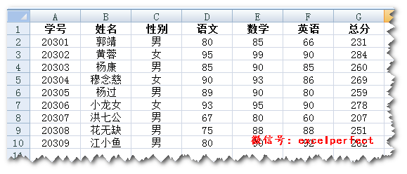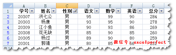 如本文开头所示的工作表,要求获取男女同学中总分最高的同学数据记录。将排序与高级筛选相结合,可以达到我们的目的。