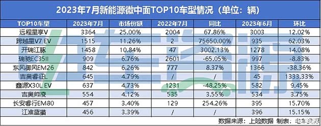 系列以25.00%的市场份额继续蝉联新能源微中面销量榜销冠,7月单月销量3364辆,同比增长67.86%。其中,远程星享V5E销量198辆,远程星享V6E销量3166辆。