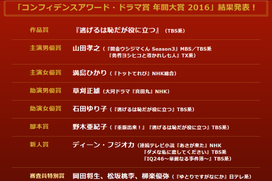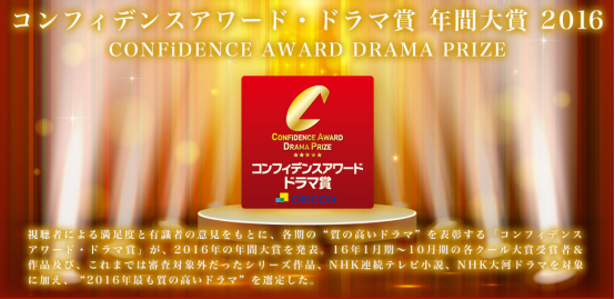 之前还评选出了2016年年度大奖,但这里的年度评选范围并不包括2017冬日剧,仅仅以2016年期间播出的日剧为对象。