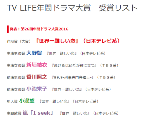 这是由电视杂志TV LIFE所选出的日剧大赏,当然网上也可以投票。