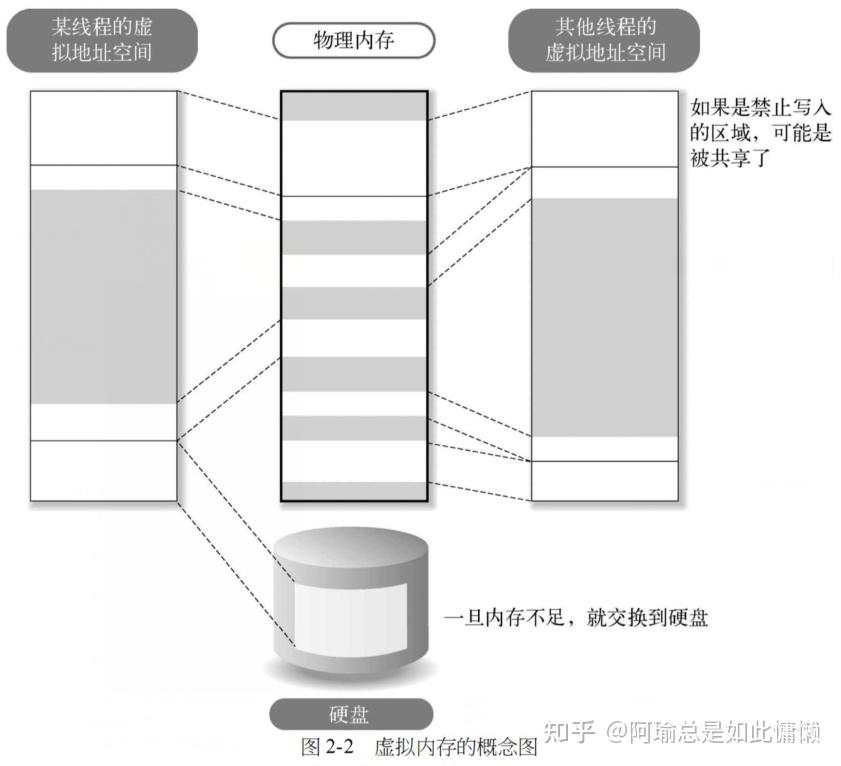 当然,实际上真正去保存内存数据的还是物理内存,操作系统通过一些方法入段页式内存管理等等很多不同方法将物理内存分配给虚拟地址空间,这部分的实现由操作系统来实现,对于应用程序来说是透明的不需要我们去考虑。(实际上如果要考虑高性能比如cache缓存以及不要过于频繁的缺页中断等待问题也需要理解底层操作系统才行)