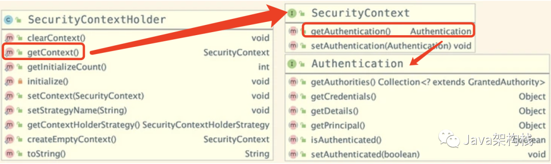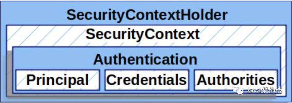 我们可以用下图展示SecurityContextHolder、SecurityContext与Authentication三者之间的关系: