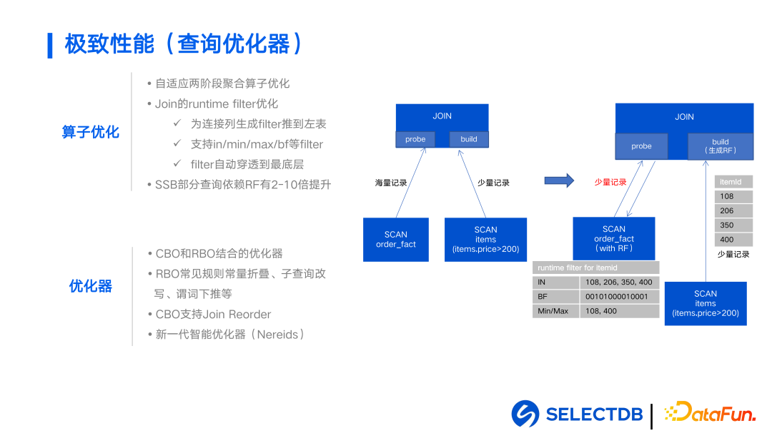 值得注意的是,Apache Doris 2.0 Alpha 版本( https:// github.com/apache/doris /releases/tag/2.0.0-alpha1 )已经发布,并实现了单节点数万 QPS 的高并发点查询能力、高性能的倒排索引、基于对象存储的冷热数据分离、基于代价模型的全新查询优化器以及 Pipeline 执行引擎等,欢迎大家下载体验。