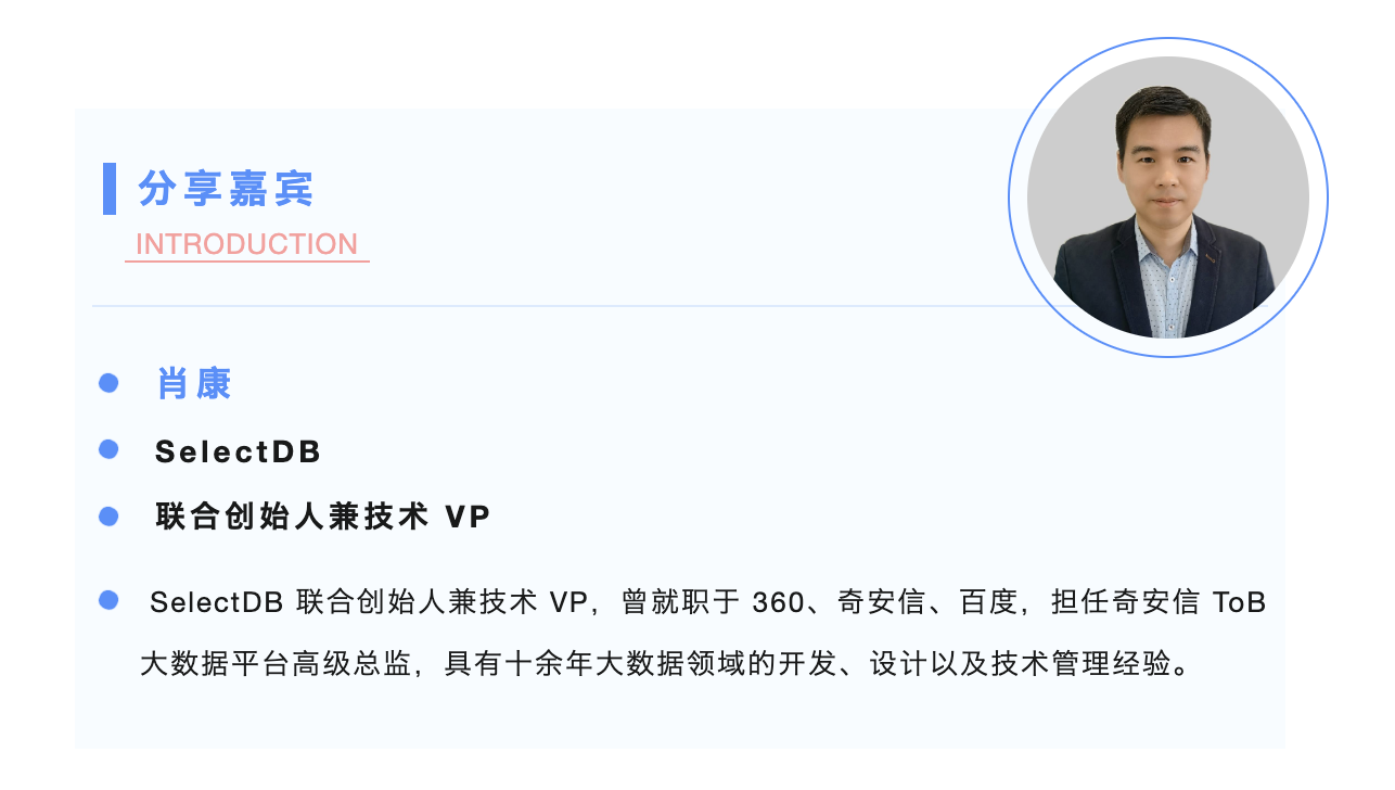 分享嘉宾|肖康 SelectDB 联合创始人兼技术 VP