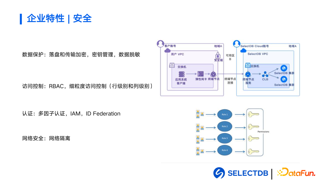 在这样架构之下 SelectDB Cloud 有几个特点。极致性能、融合统一、简单易用、高性价比、开源开放,内核完全基于 Apache Doris 打造,能与 Doris 保持完美兼容,同时还提供了众多企业特性来满足更多样的管控和安全需求。接下来详细介绍这 6 个特点。