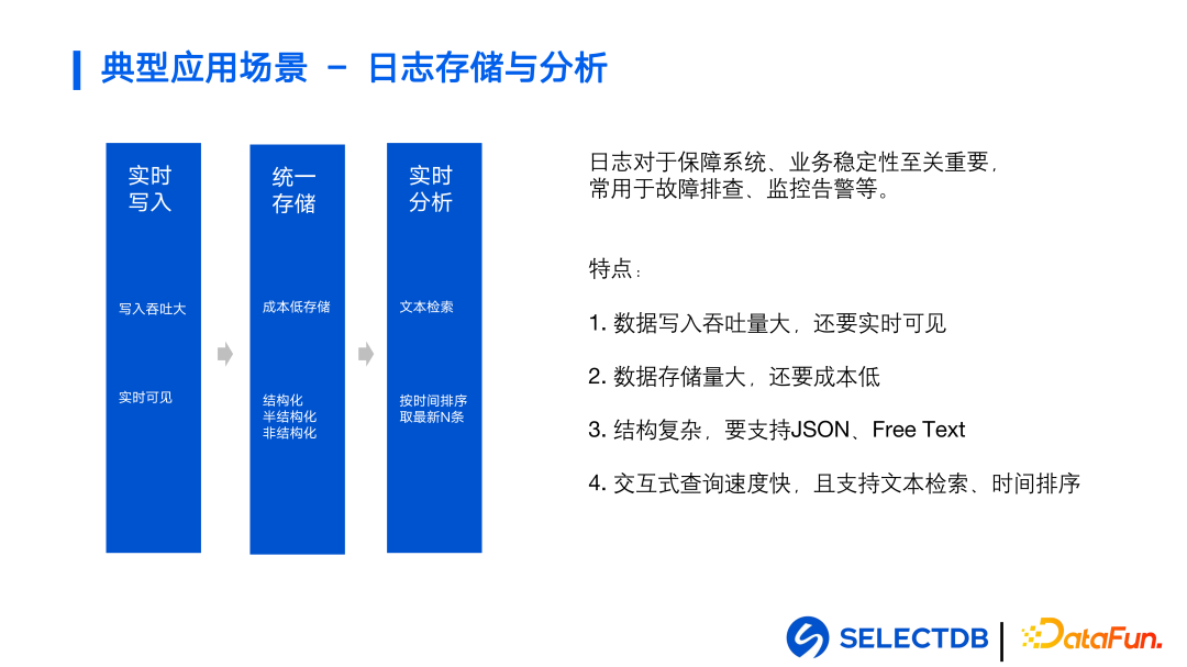 ② 数据存储量大,日志发挥价值相对业务数据价值密度较高,对成本敏感;