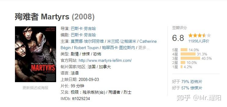 《殉难者》是一个很邪性的电影,没有一定承受能力的观众千万不要去观看。片名代指人体在经历一系列非常残忍和血腥的身体心灵折磨后一种超脱的存在,类似于邪教的圣人或者神。属于偏艺术流的恐怖片,当时我看完是深受震撼,非常另类的感官体验。