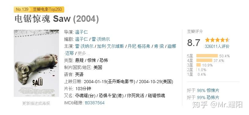 恐怖片领域8.7分什么概念相信恐怖片迷完全能明白,这个分数可能就是该类型片的巅峰之作了。