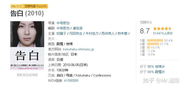本片导演中岛哲也同时是前面介绍的电影《告白》的导演,其一向对社会题材驾轻就熟,视听风格一如既往的大胆,配乐也非常契合电影主题,结尾部分驱魔大戏也很带感,相信很难在其他电影里面看到这种大场面。本片其实是一个把恐怖元素当背景板的剧情片,探讨的是很深入的社会议题——如何养育小孩,反映日本社会低生育率焦虑的同时对如何才是一个真正的好父母发出疑问,让观众在观影过程中得到思考。片名来了指一种神秘莫测的邪恶力量即将到来,这股力量从头到尾都没有露出真容,到底这种力量是什么就是见仁见智的问题了。推荐大家观看。