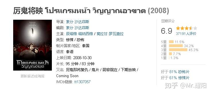 说起恐怖电影就不得不提泰国电影,该片剧情比较精彩,恐怖氛围较足,可惜的是逻辑稍差造成后半部分有点崩,不过也值得一看。