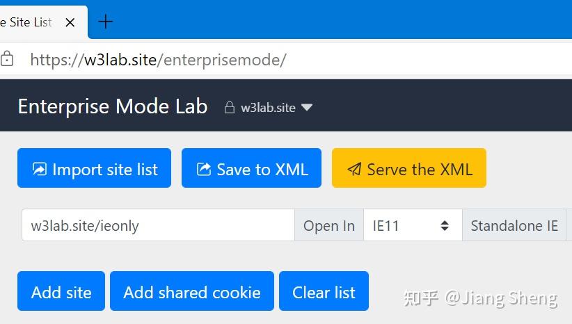 我开发了一个在线工具可以快速生成站点列表,工具入口地址: Online Enterprise Mode Site List Manager