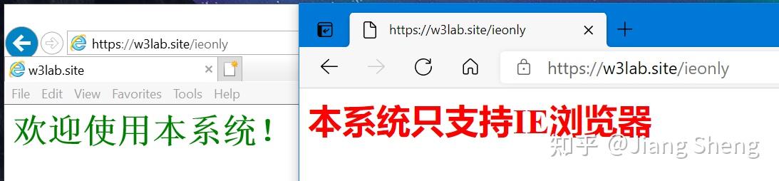 假设我们现在有一个站点: https:// edgedbg.com/ieonly 只支持在IE11浏览器中运行,这只是我做的一个简单的测试站点通过User-Agent来判断用户是否使用IE浏览器。