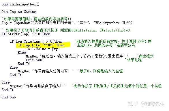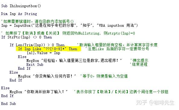 接着上一部分,对Inputbox函数的输入值进行鉴别。与上次相同的是都返回布尔值(True/False),但这篇着重介绍Like的用法。