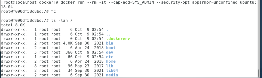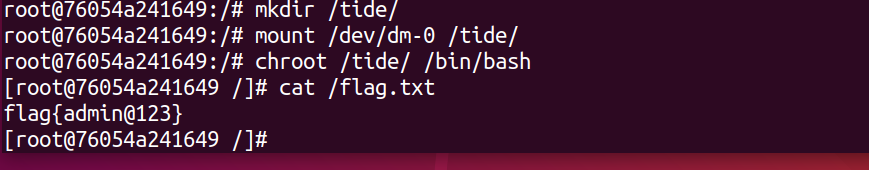 在启动后我们会进入到docker容器的bash中,在这里我们查看当前主机的docker是否为特权模式启动。
