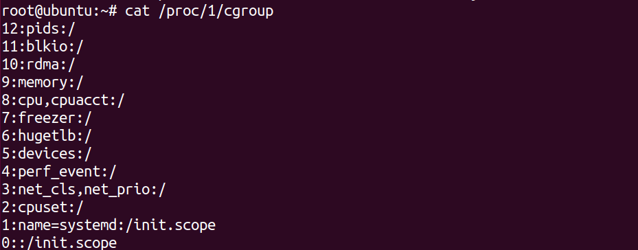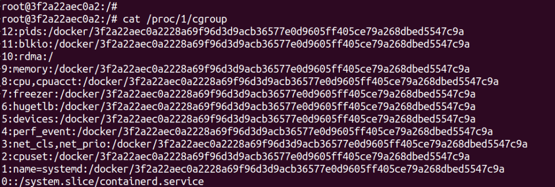 2. 查询系统进程的cgroup信息,docker环境中的cgroup文件普遍存在docker字段,而真实环境中不存在docker字段