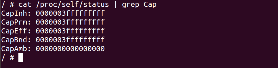 如果是特权模式启动的话,CapEff对应的掩码值在centos中为 0000001fffffffff ,在ubuntu中为0000003fffffffff,如下图