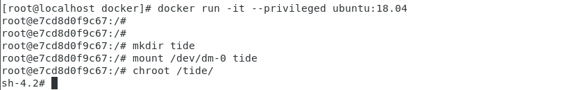 docker run -it -v /:/tide ubuntu:18.04 /bin/bash