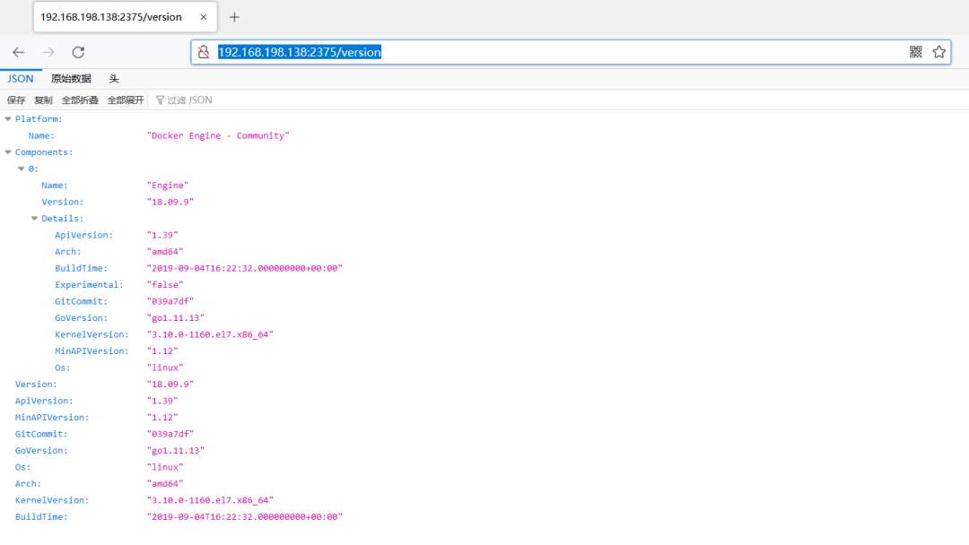 ,会返回docker的版本信息,这样证明该漏洞存在。