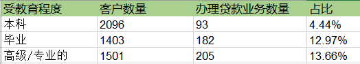 由图可见:毕业生和职业人员的转化率为12.97%和13.66%,均高于9%。说明,教育水平越高,越能接受超前消费观念,贷款的意愿也越高。