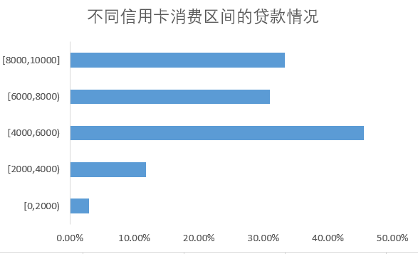 由图可知,信用卡消费在4000美元以上的贷款意愿越高。