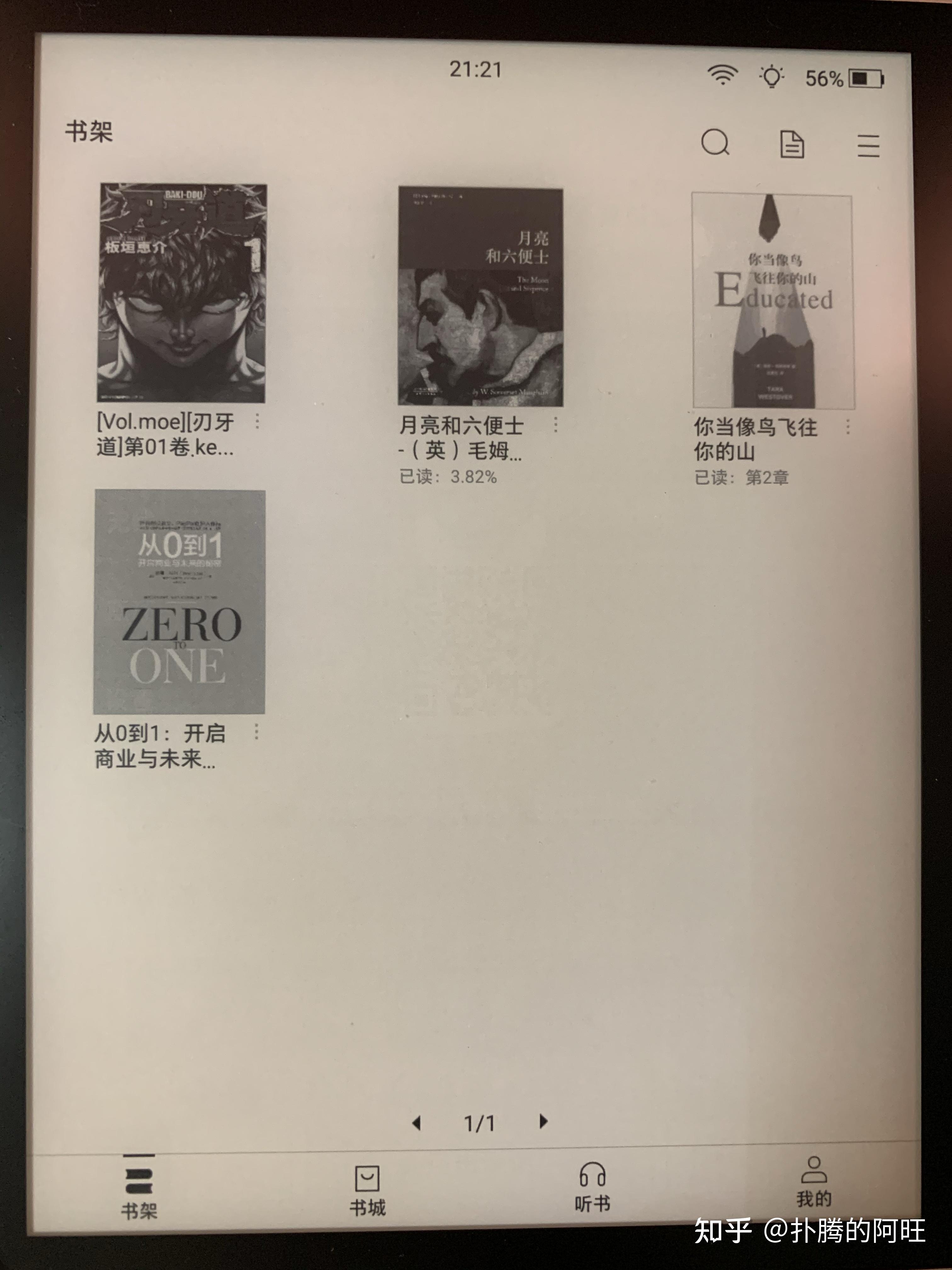 如图是我提前下载了一份漫画 刃牙道第01卷,是 epub 格式。顺带一提,掌阅支持的文件格式非常多。 几秒钟后!!! 此时,在书架上就可以看到这本书了,简直太快了!