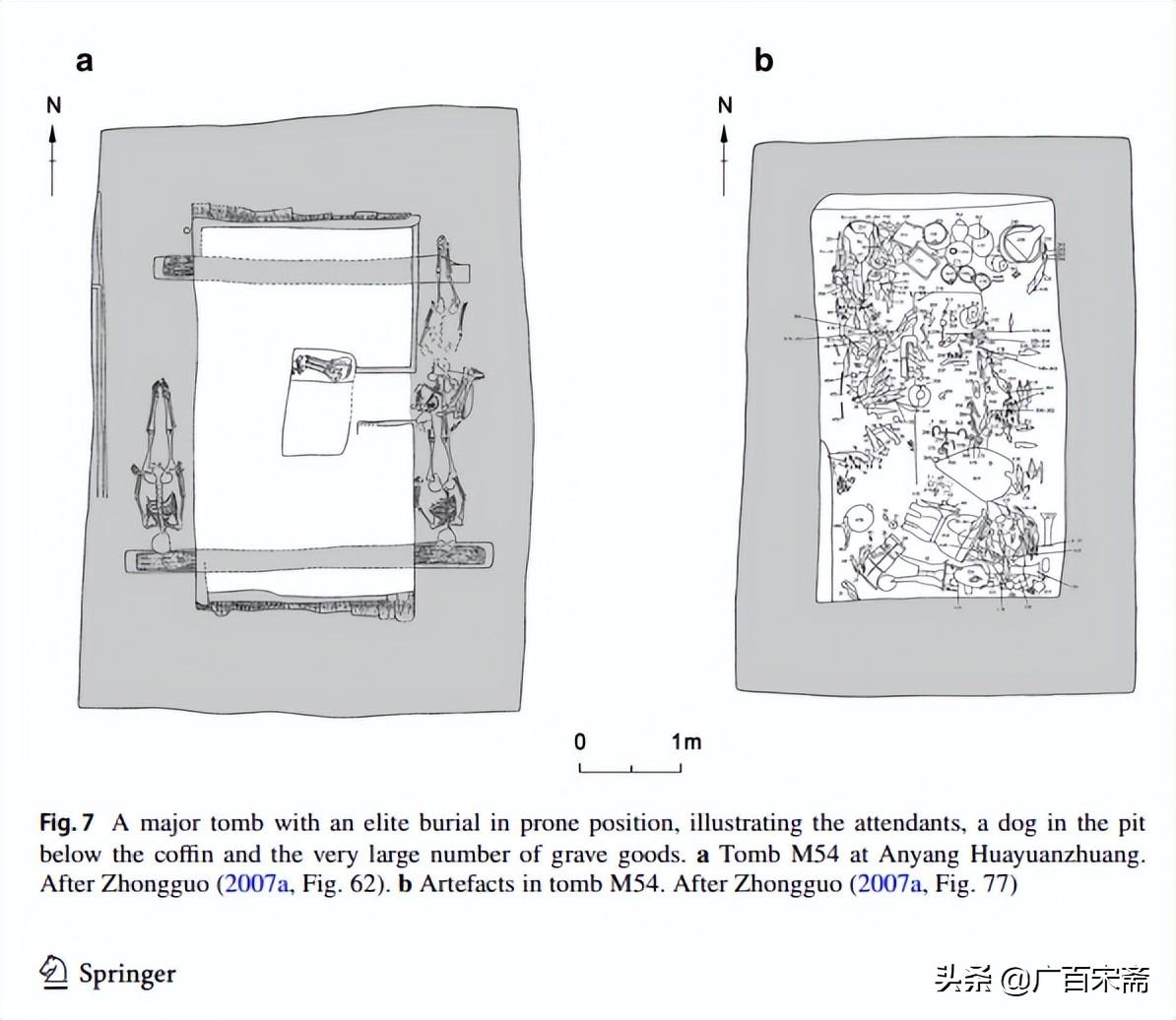论文接着巴拉巴拉巴拉地举证,论述殷墟大墓M54墓主亚长的墓葬情况,指出亚长是商朝精英,是战车指挥官,其葬式为俯身葬。