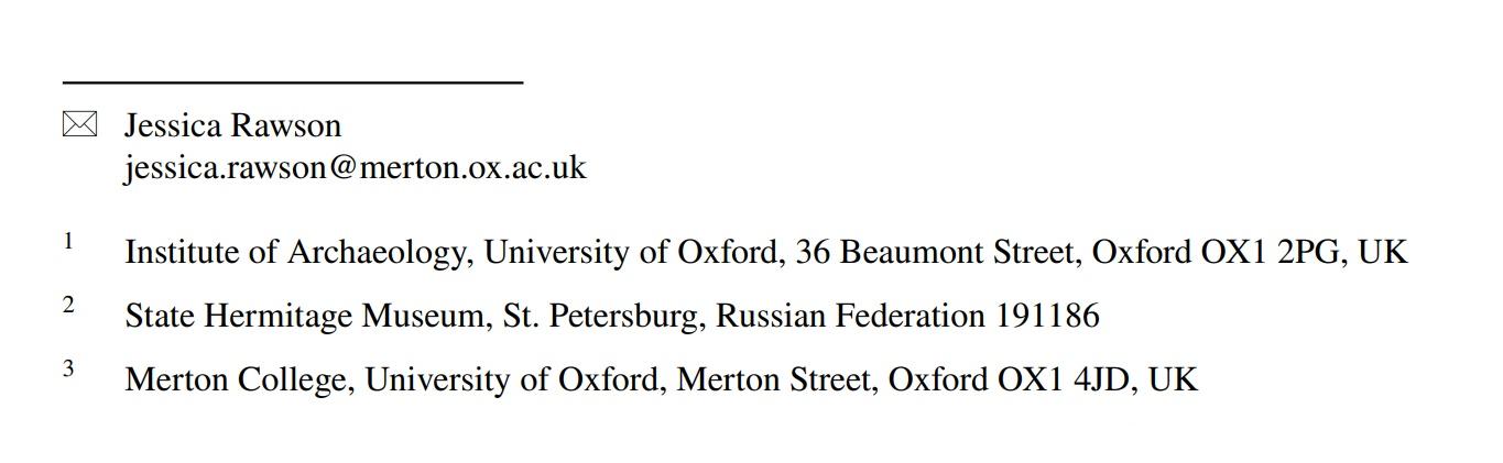 瞧瞧这四位作者所在的机构——牛津大学考古研究所、牛津大学Merton学院、俄罗斯圣彼得堡国家冬宫博物院——学渣们,你们的“投枪”(pen fen)呢?