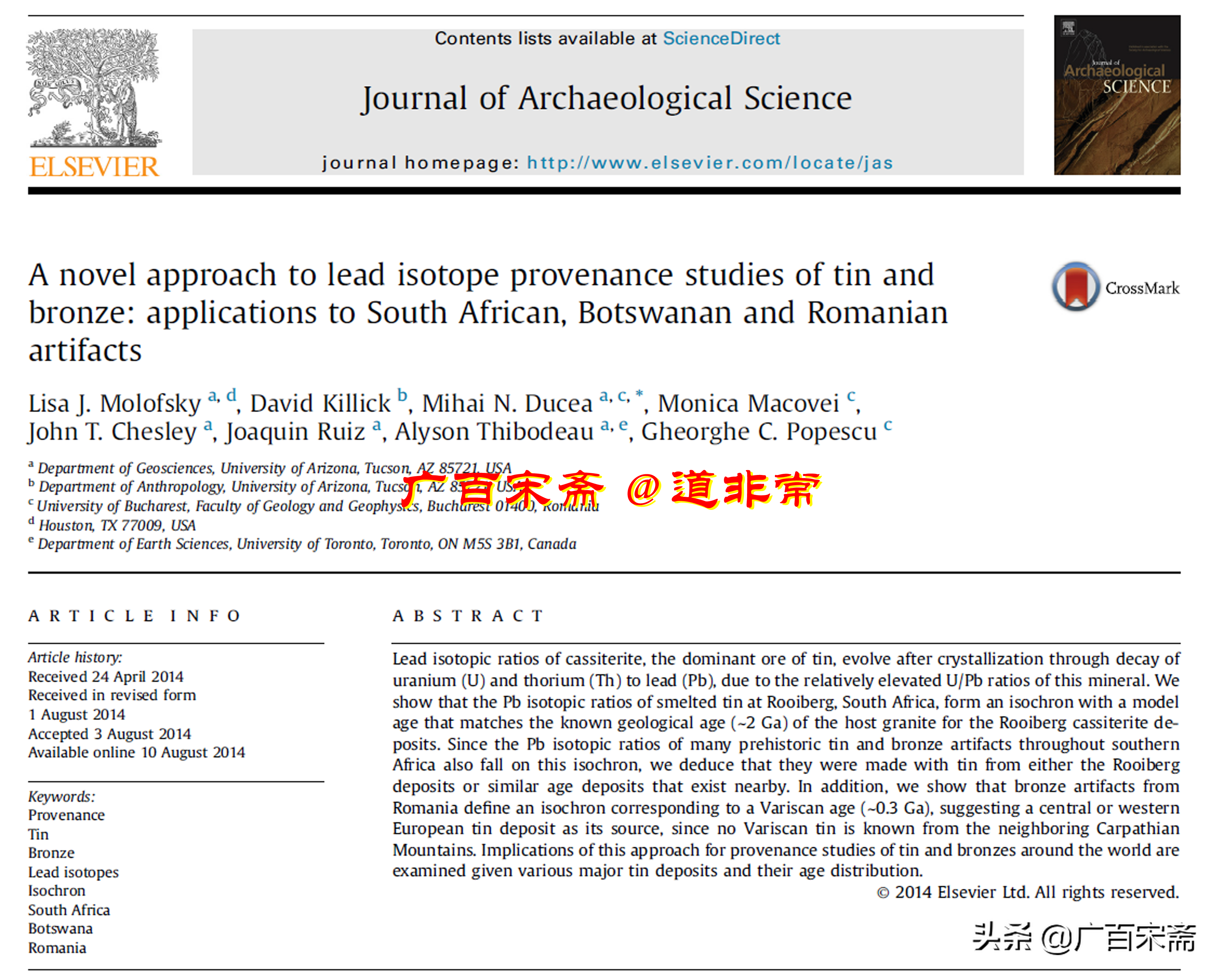当然知道嘛,怎么可能不知道嘛,这些人还写论文驳斥孙卫东的论断,可是孙卫东的论文明明列出了外国专家的论文 《锡和铜器中铅同位素来源研究的新方法:对南非、博茨瓦纳和罗马尼亚文物的应用研究》 (A novel approach to lead isotope provenance studies of tin and bronze: applications to South African, Botswanan and Romanian artifacts),这篇论文偏偏显示了异常铅的矿源远在南非如意宝(Rooiberg)古锡铅矿。